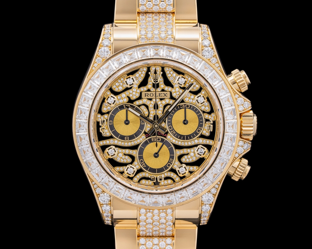 Rolex Daytona 116598TBR “Eye of the Tiger” in yellow gold. It’s bold, flashy, and pretty much the definition of a rockstar watch.