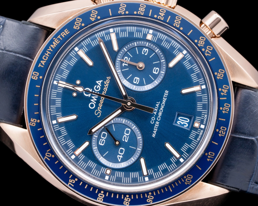 Omega Speedmaster Racing Chronograph 18K Sedna Gold Blue Dial