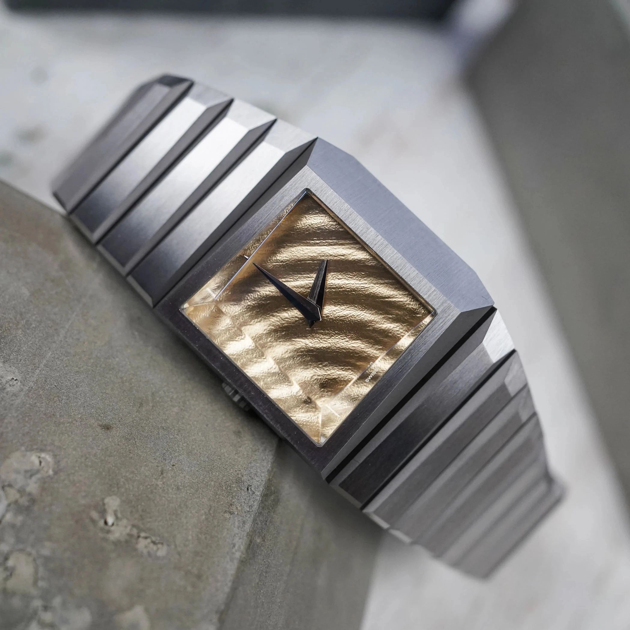Toledano & Chan announced its fourth watch, the b/1.3r in titanium. The asymmetric case and crystal design are aesthetically as interesting as the brand’s previous releases, and they’ve listened to collectors’ requests by shrinking the case slightly from 33.5mm to 32mm. The most striking aspect of this piece is the ripple-effect 18K gold dial, which reminds us of the sand dunes of Tattooine. With a case and bracelet in full Grade 5 titanium and a distinctive, out-of-this-world design, this piece would not be out of place in the Star Wars universe.