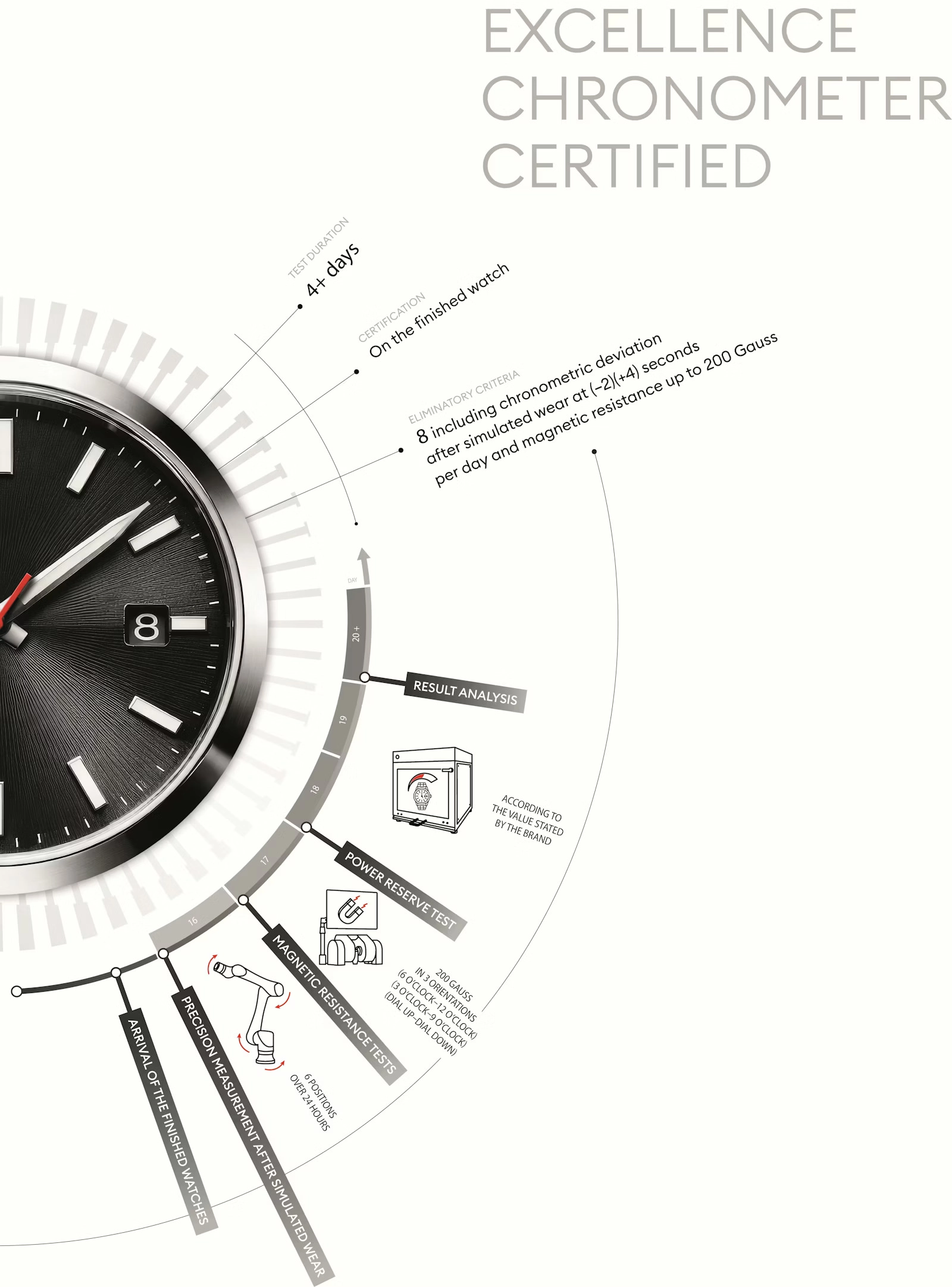The COSC, or Contrôle Officiel Suisse des Chronomètres, an independent authority that certifies chronometer movements within specific standards, has released a new standard in Swiss chronometry with the COSC Excellence Chronometer. The COSC has been using the ISO 3159 standard for many years, which measures seven criteria, including the well-known timekeeping accuracy of -4/+6 seconds per day. The new Excellence Chronometer certification introduces stricter criteria, including but not limited to “a daily rate tolerance of 6 seconds instead of 10, magnetic resistance up to 200 Gauss, and verification of the stated power reserve. In addition, watches will be tested under conditions that closely simulate real-life wear,” according to the COSC.